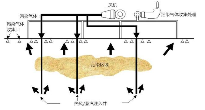 1、物理修復技術(shù)。物理修復主要針對有機污染物,修復技術(shù)包括蒸汽浸提、熱脫附、微波加熱等,目前已有苯系物、多環(huán)芳烴、多氯聯(lián)苯以及二噁英等的土壤修復的工程應用。蒸汽浸提技術(shù)可以進行原位或異位修復,是通過降低土壤孔隙的蒸汽壓,將土壤中的污染物以蒸汽形式去除。適用于高揮發(fā)性化學污染土壤的修復,如汽油、苯和四氯乙烯等。具有可操作性強,設備簡單,容易安裝,對土壤結(jié)構(gòu)破壞小,處理周期6~24個月。但只能處理不飽和的土壤,對飽和土壤和地下水的處理還需要其他技術(shù)。熱脫附修復技術(shù)指利用高溫所產(chǎn)生的一些物理和化學作用(揮發(fā)、燃燒、熱解)去除或破壞土壤中有毒物質(zhì)的過程。一般用于處理有機污染的土壤(VOCs、SVOCs、農(nóng)藥等)及部分重金屬污染的土壤(如揮發(fā)性金屬汞),具有快速、治理效果好、適用范圍廣等特點。但熱處理技術(shù)成本較高,相關(guān)設備及修復過程需要大量的人力物力與時間,一定程度上限制了該技術(shù)的推廣應用。