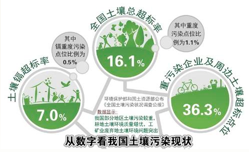 一、土壤污染現(xiàn)狀。2005年4月-2013年12月,環(huán)保部與國土資源部首次開展了全國土壤污染狀況調(diào)查,根據(jù)2014年《全國土壤污染狀況調(diào)查公報》調(diào)查結(jié)果顯示,我國當前的土壤污染超標率達到16.1%,并且耕地污染超標率達到19.4%,林地及草地的污染超標率高于10.0% 以上。2016年5月28日,國務院印發(fā)了《土壤污染防治行動計劃》,簡稱"土十條"。"土十條"的發(fā)布被認為是土壤修復事業(yè)的里程碑事件。隨著"土十條"的發(fā)布,國家陸續(xù)出臺了一系列法律法規(guī)及政策文件,如:《污染地塊土壤環(huán)境管理辦法(試行)》(2017年7月1日施行)、《農(nóng)用地土壤環(huán)境管理辦法(試行)》(2017年11月1日施行)、《工礦用地土壤環(huán)境管理辦法(試行)》(2017年12月17日完成第一次征求意見)等等。這預示著土壤污染同大氣污染及水污染的防治同樣重要,土壤污染修復工作的開展,將減緩當前土壤環(huán)境惡化的加劇,為推進生態(tài)文明建設,加快建設美麗中國添磚加瓦。