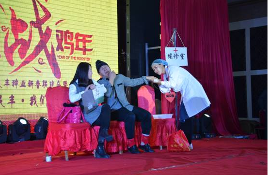 聯(lián)歡會演出在歡快活躍的的舞蹈《小雞舞》中拉開序幕。整場演出精彩紛呈,高潮迭起,洋溢著濃濃的喜悅氣氛。獨唱《最后的傾述》、《得民心者得天下》、配樂詩朗誦《民豐夢你走來》、舞蹈《向前沖》、情景劇《甄嬛后傳》……來自公司總部各部門和陰山優(yōu)麥有限公司的職工們用屬于自己的舞蹈迎接新年,用自己的歌聲歌唱美好,彰顯了民豐人團結、奮進的真善美和精氣神,也表達出了立足本職工作對企業(yè)的熱愛和美好明天的向往。小品《候診室的故事》則詼諧幽默、笑點頻出,編排匠心獨具,表演令人捧腹。平日里忙著各自工作的職工們走上舞臺,不亞于專業(yè)演員水平的表演,贏得了滿堂陣陣喝彩。最后,聯(lián)歡會在原種生產(chǎn)管理中心的大合唱《我們是民豐種業(yè)接班人》中落下帷幕。